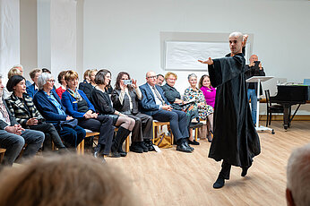 „Ein Preis für Papier und Poesie“ titelte die Coburger Presse. Die Preisverleihung fand in diesem Jahr in Coburg in den Räumen des Kunstvereins, vom SI-Club Coburg organisiert, statt und es hätte zu diesem Anlass keinen passenderen Rahmen für Aja von Loeper und ihre Kunst geben können. Die Verbindungen zu Coburg sind eng. Kreativ wie die Kunst, wurde auch das Programm gestaltet. Im dialogisch bestuhlten Raum entstand in der Mitte Fläche für die Sequenzen von vier Tanzenden vom Ballett des Landestheaters Coburg, die thematisch auf die Arbeiten von Aja von Loeper abgestimmt waren.